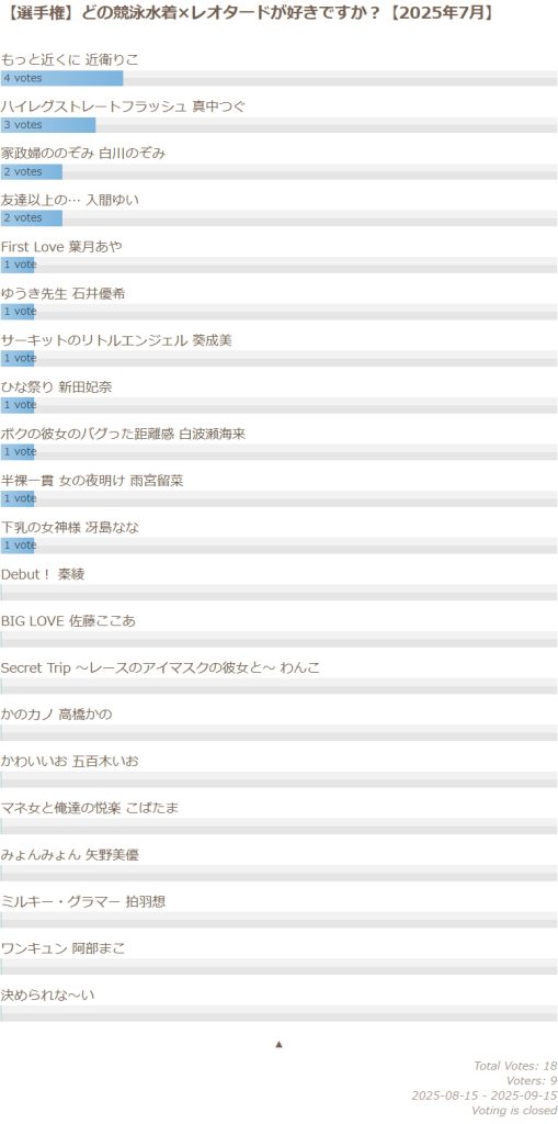 で、管理人が選ぶ『2025年7月の競泳×スク水×レオタード』MVPは『ハイレグストレートフラッシュ 真中つぐ』に一票です🏆️
